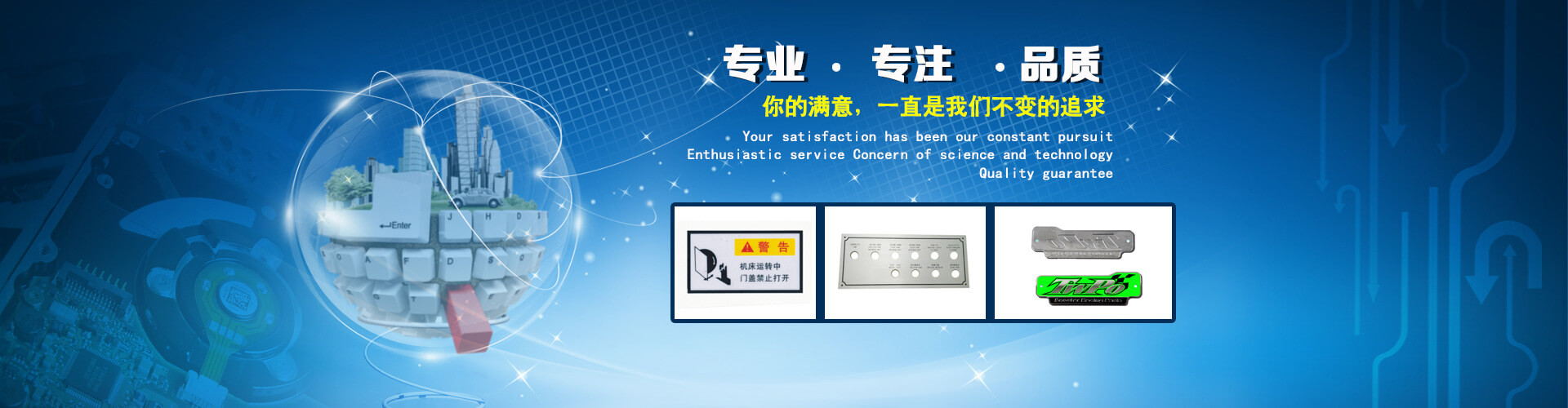主要加工产品:金属标牌(铜标牌,铝标牌,不锈钢标牌),电力标牌,喷砂阳极氧化标牌,氧化着色标牌,丝网印刷多色标牌,蚀刻标牌,PC/PVC按键标牌,薄膜开关标牌等产品。